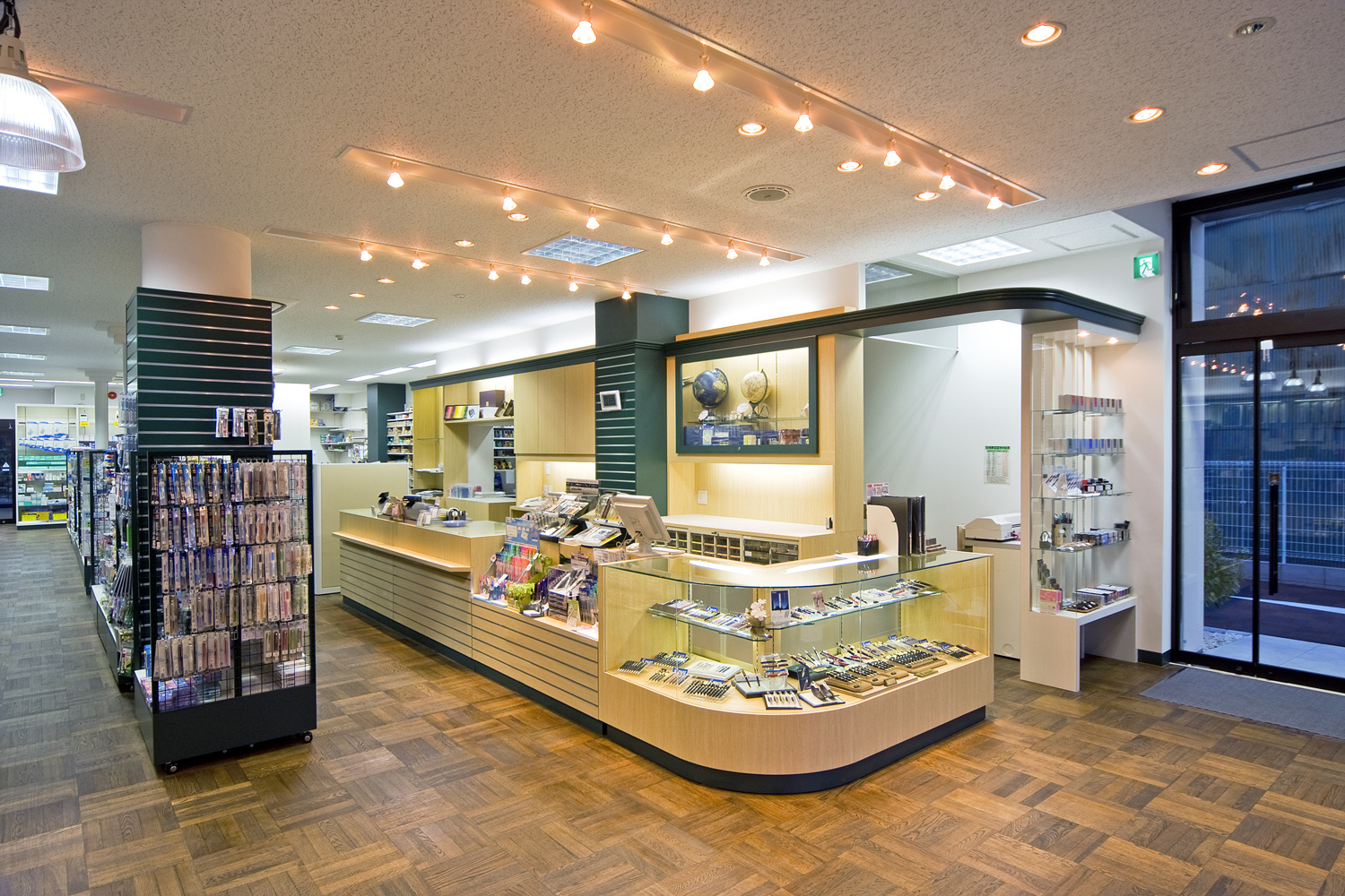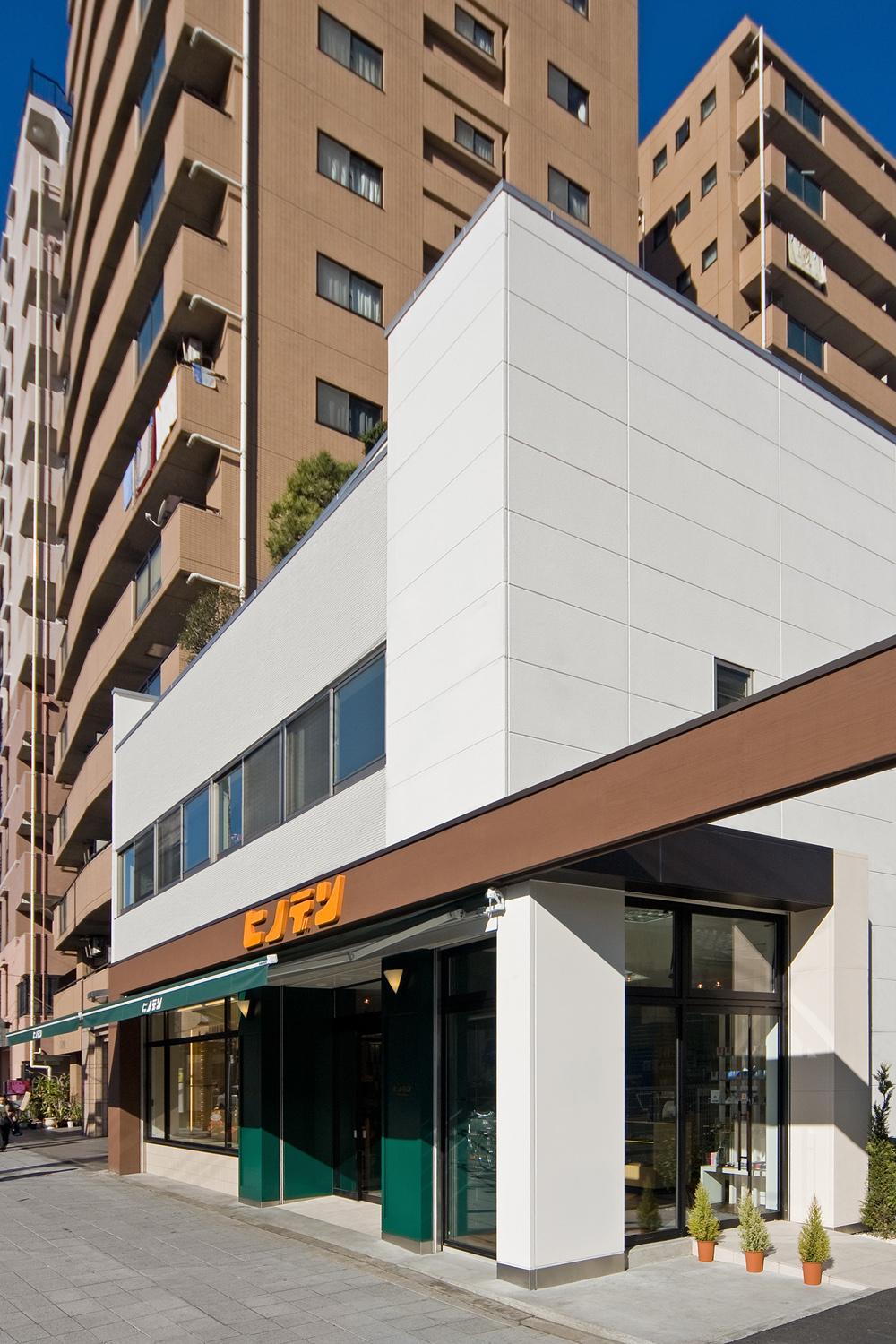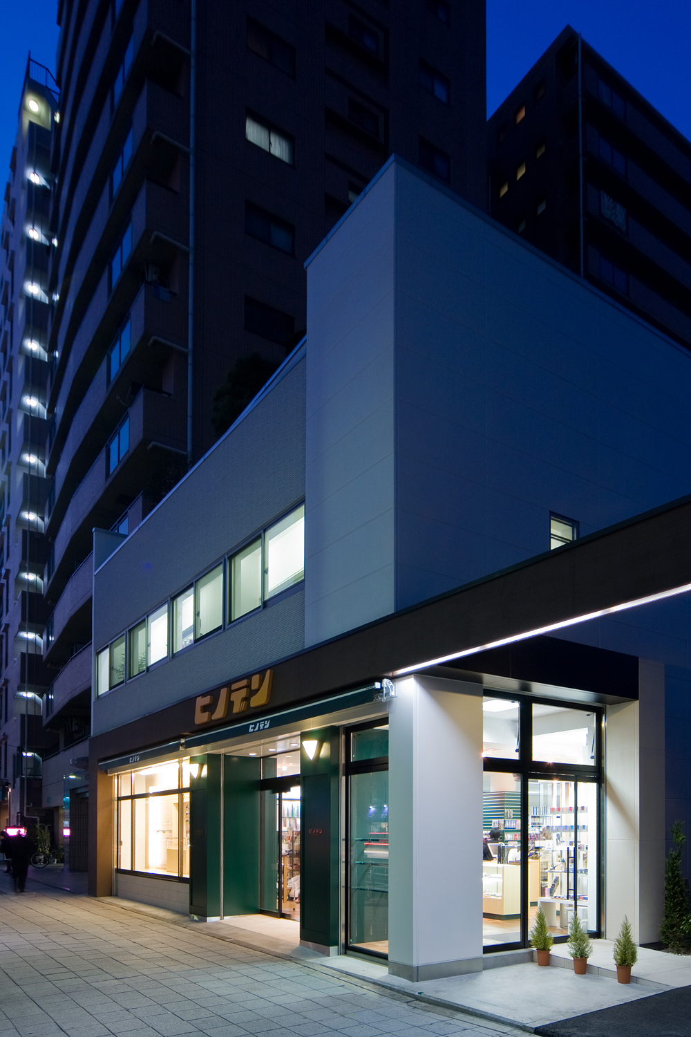 八王子の文具店ヒノデンの、築40年を超えるRC造店舗社屋の耐震補強を兼ねた内外装リニューアル工事。CLIPは外装と構造を担当した。店舗の内装は伊藤屋を手掛ける珠州屋による。各階1箇所ずつ耐震壁を追加して、建物の偏芯を少なくして耐力を増す補強を施した。