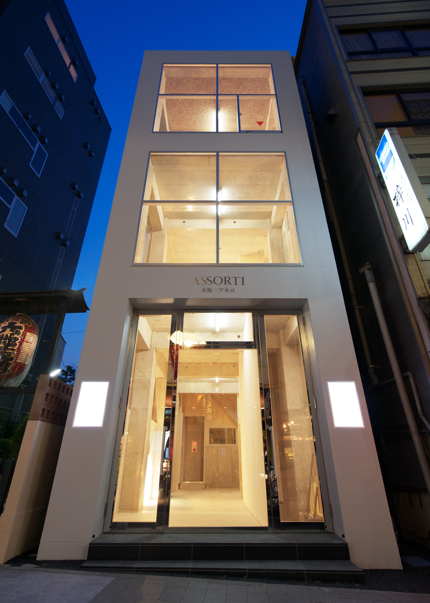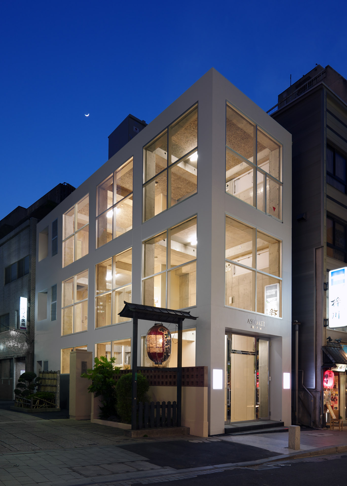 多種多様なテナントの入居を可能とするため、端正で控えめなデザインとしました。柱と梁によるフレームは、長さをそろえることで外壁面に正方形グリッドを構成し、大開口であるショーウィンドの「額縁」を意識しています。