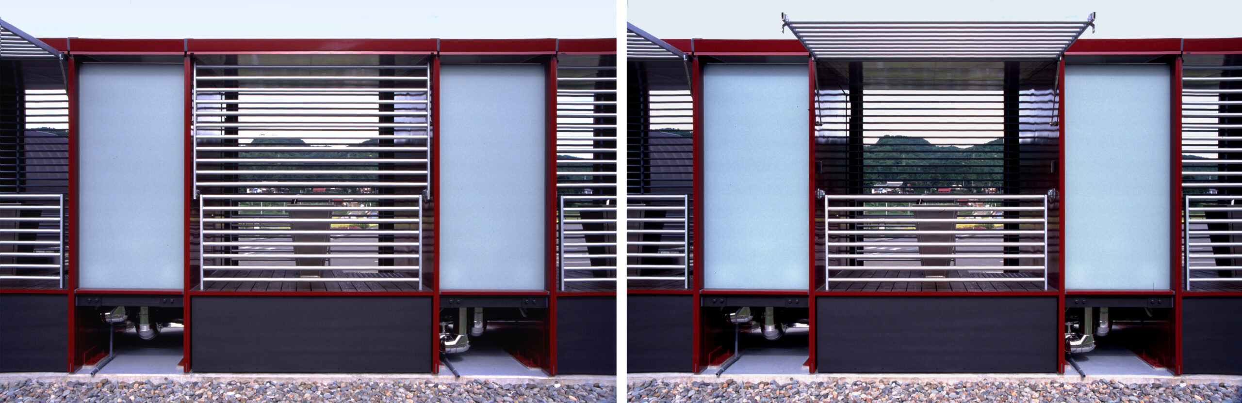 冬期は閉じて雪囲い、夏期は開いてひさし